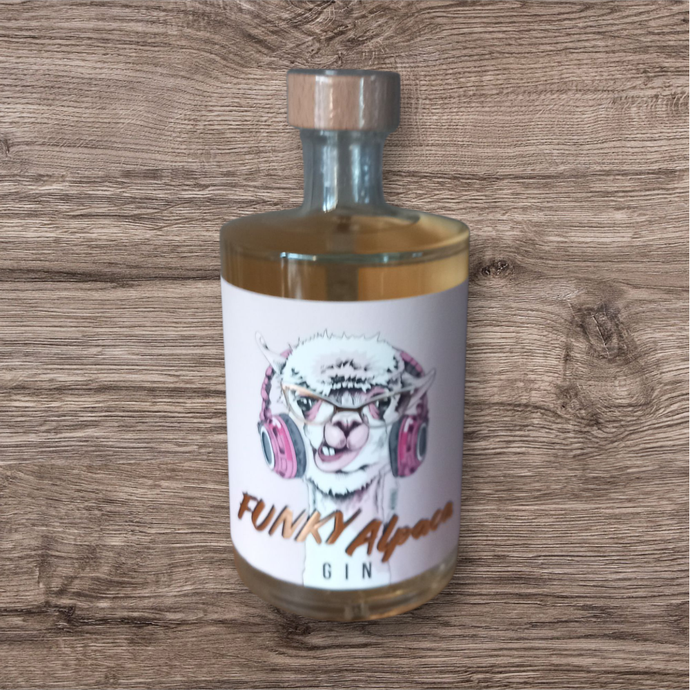 Deze fles Crazy Alpaca Gin is een 37.5° alcoholische drank uit Ternat. Perfect te serveren met tonic, ijs en te accentueren met een takje munt en rood fruit
