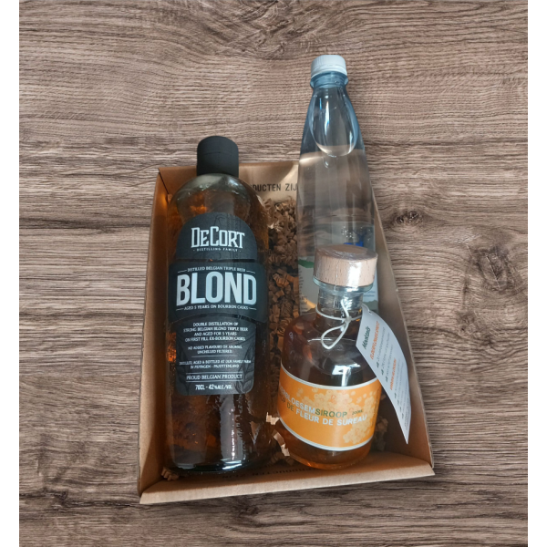 Een geschenkbox met alle ingredienten om de perfecte Cocktail 'De Corte Blond' te maken.