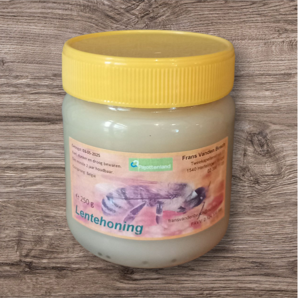 Een lekkere zachte Pajotse lentehoning uit Herne. Lekker op de boterham of in je thee.