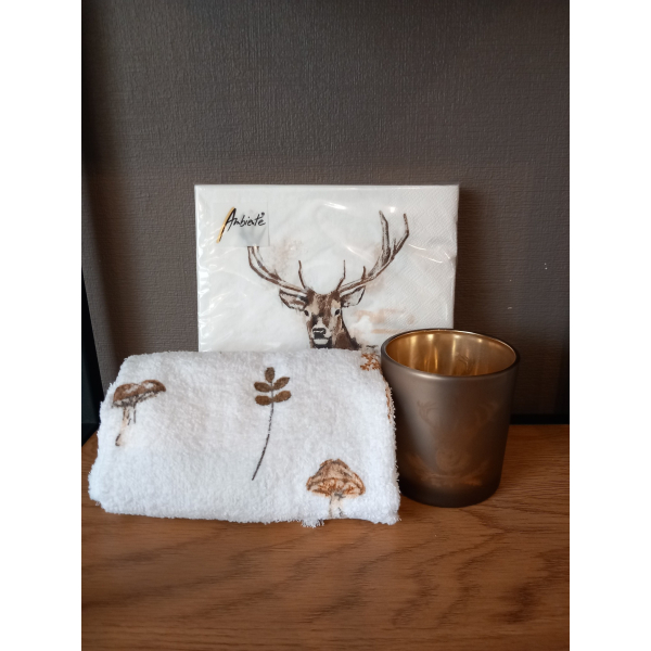 Mooi gastendoekje Clayre & Eef (handdoek voor keuken of toilet volgens beschikbaarheid) , 1 pak seizoensservetten 1 seizoenswindlicht