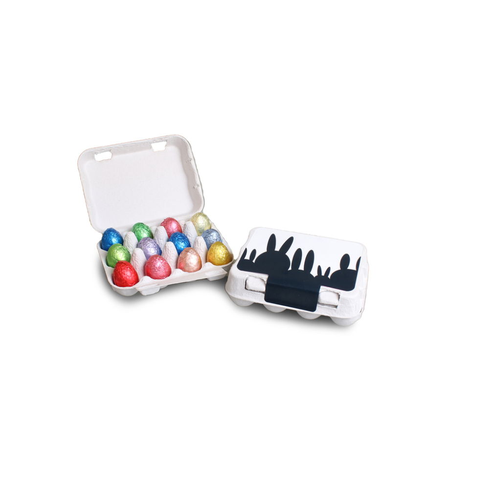 Paaseierdoosje gevuld met een mix van 12 chocolade paaseitjes
