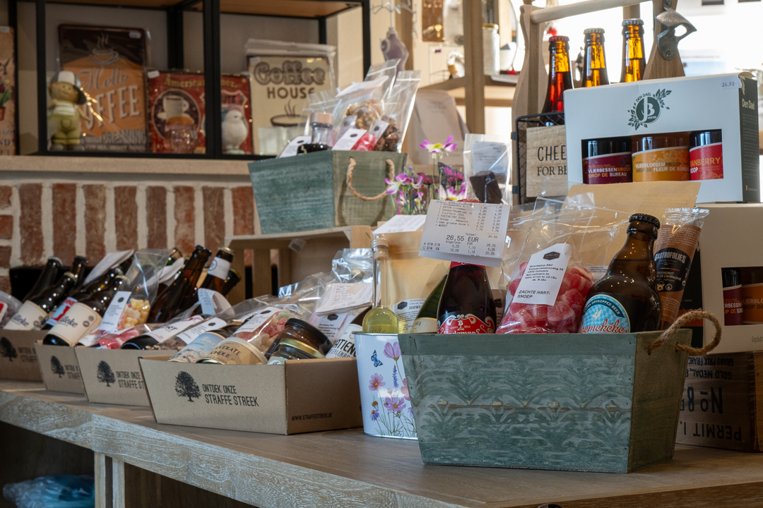 Bierbox met versnaperingen, nl. het Dilleke uit Dilbeek, Jeanneke uit Roosdaal, de Maurice uit.....