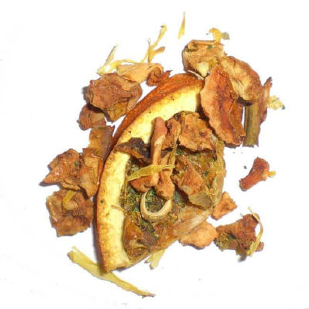Ingredienten: sinaasappelschil,mandarijn, goudsbloem, aardbeiblad