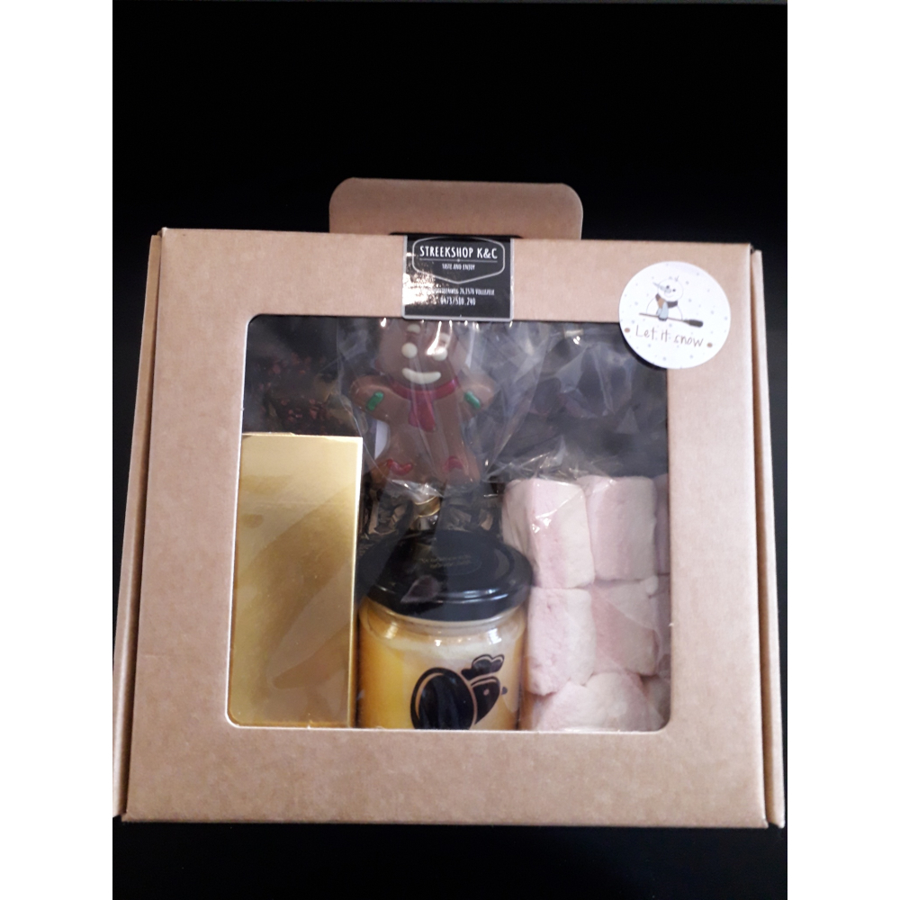 deze box is een ware lekkerbekkenbox met 1 pot ambacht.Pajotse advokaat 228ml, 1 zakje cuberdons, 125g ambachtelijke pralines, 1 zak roze spekken(9st), 1 zak melocakes , 1 lolly